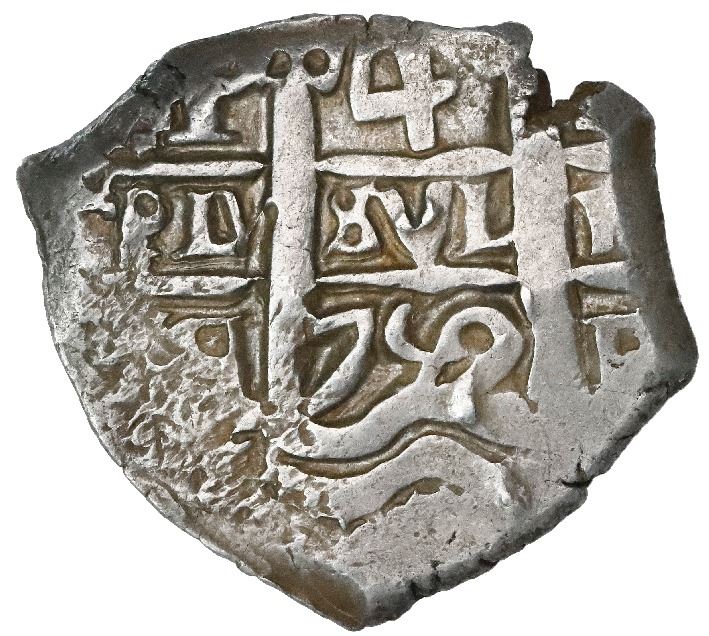 Potosi, Bolivia, cob 4 reales, 1752q. S-P52; KM-39; Cal-406. 13.61 grams. Full pillars-and-waves, good but slightly off-center cross, bold date, three mintmarks, lightly toned XF with some peripheral surface roughness as expected. Pedigreed to the Arturo Rosenheim collection.