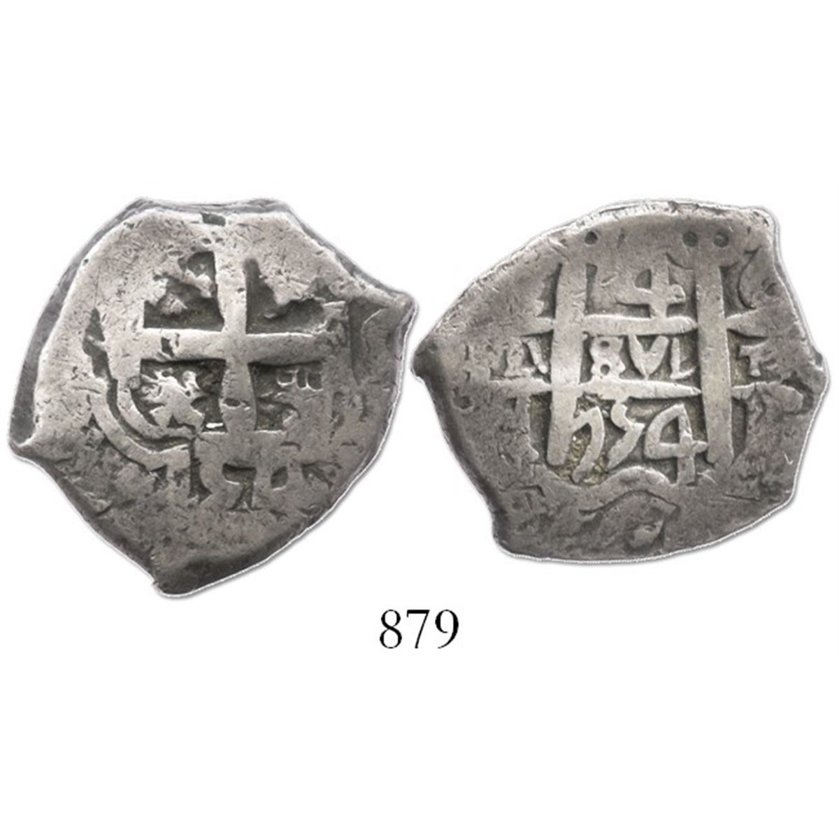 Potosi, Bolivia, cob 4 reales, 1754C+q, very rare.