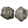 Potosi, Bolivia, cob 4 reales, 1765V-(Y). S-P57; KM-44; CT-1158. 13.42 grams. Crude and chunky flan with most of cross, doubled pillars with clear date, typical surface roughness, VF for the era with jagged edge (as made).