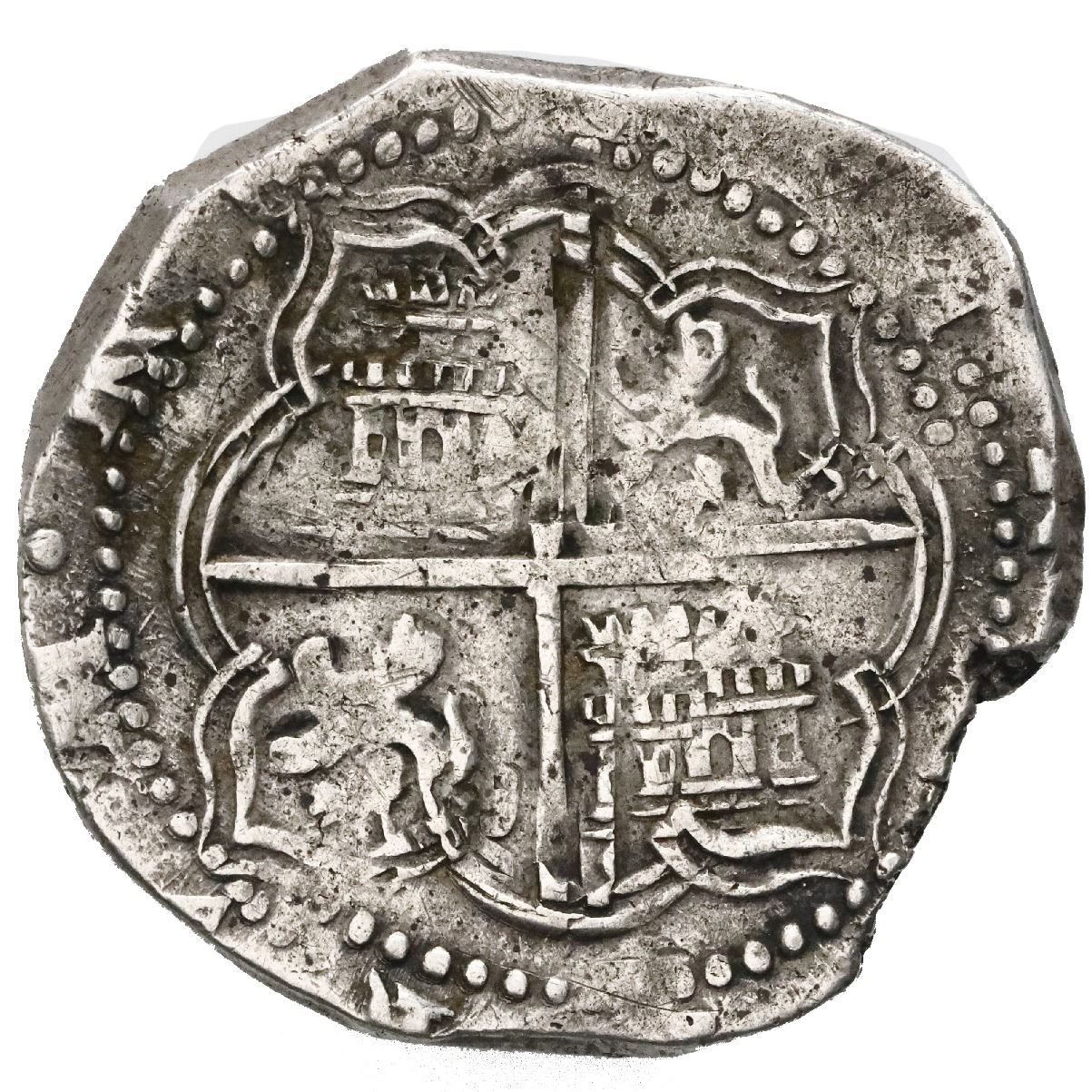 Potosi, Bolivia, cob 4 reales, Philip II, assayer A. S-P11; KM-4.2; Cal-527. 13.25 grams. VF with full and mildly doubled shield and cross, a few thin scratches. Pedigreed to the Arturo Rosenheim collection.