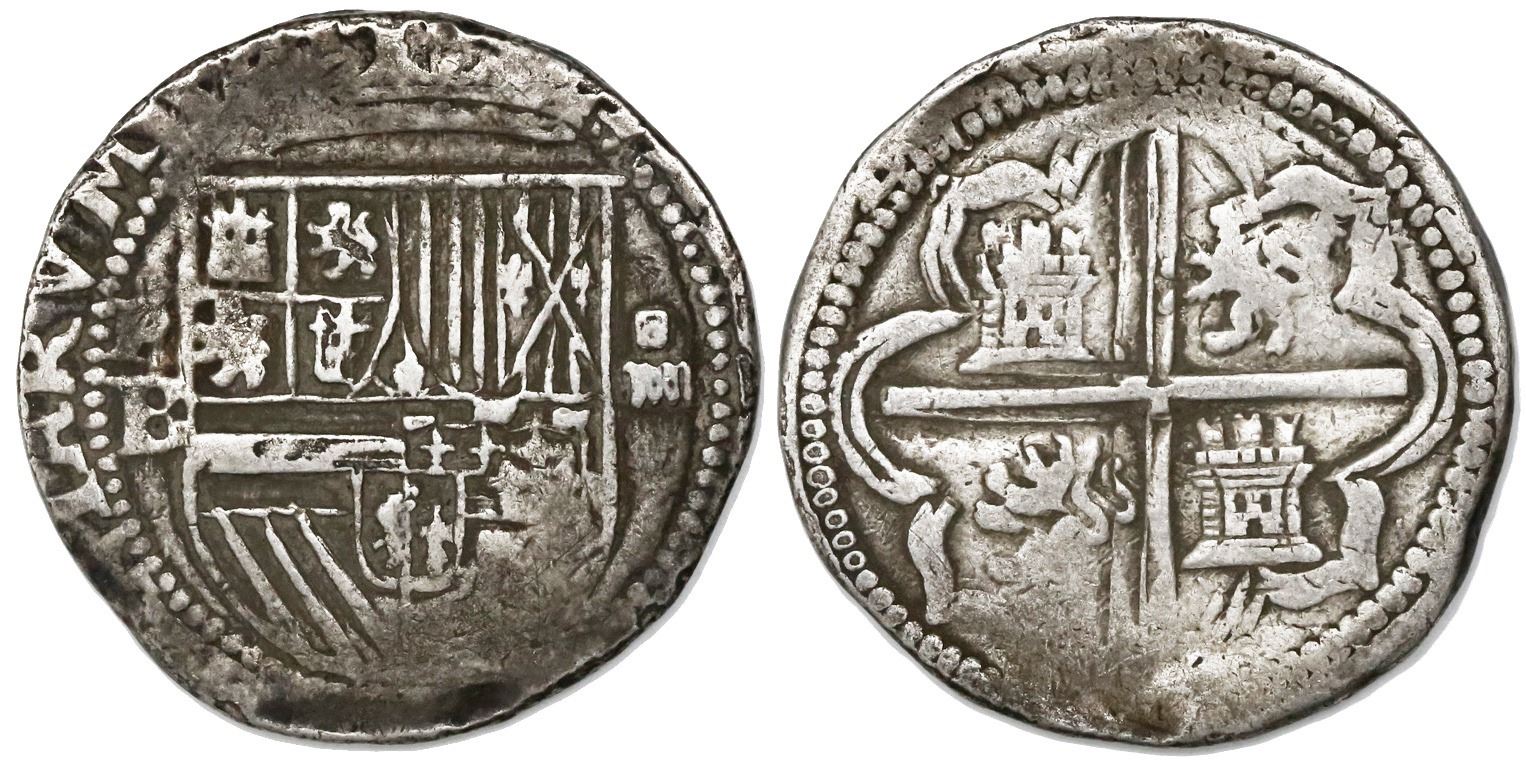 Potosi, Bolivia, cob 4 reales, Philip II, assayer B (1st period).