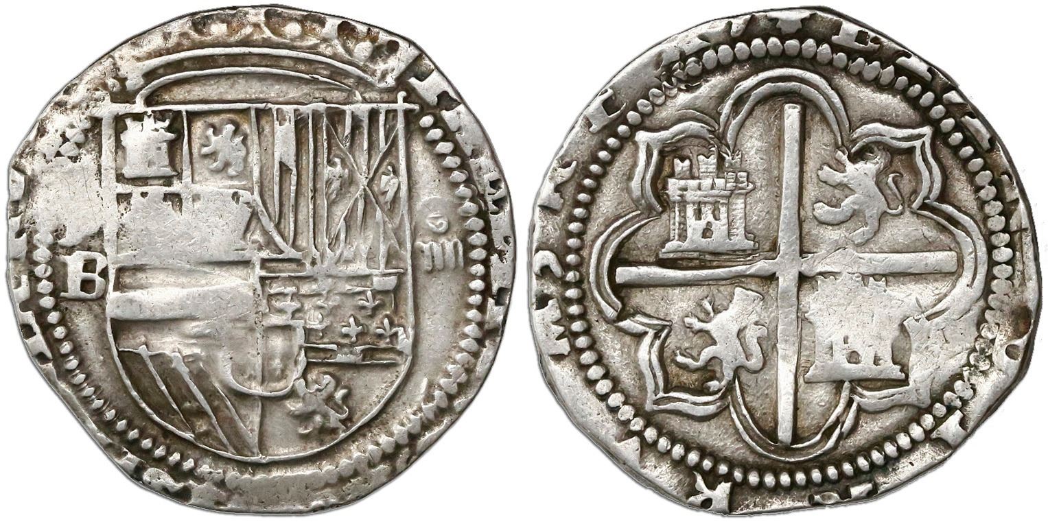 Potosi, Bolivia, cob 4 reales, Philip II, assayer B (1st period).