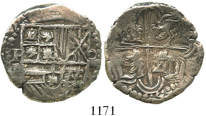 Potosi, Bolivia, cob 4 reales, Philip II, assayer B (5th period).