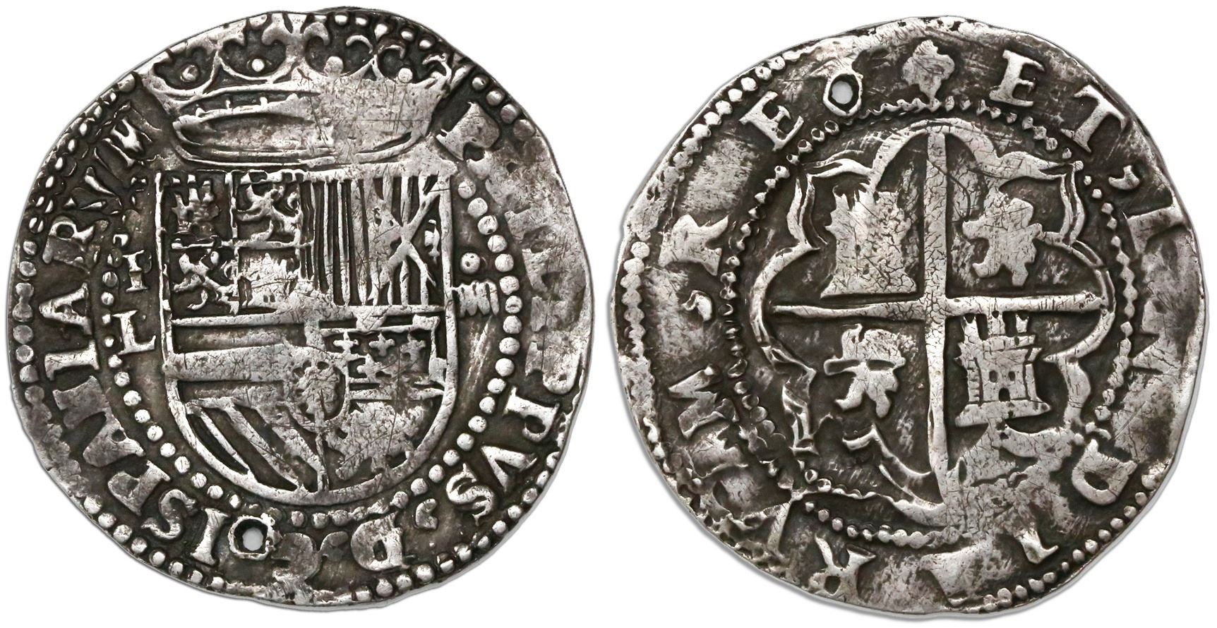 Potosi, Bolivia cob 4 reales, Philip II, assayer L (1st period).