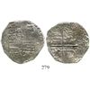 Potosi, Bolivia, cob 4 reales, Philip III, assayer Q, Grade 1. S-P17; KM-9; CT-243. 12.0 grams. Soli
