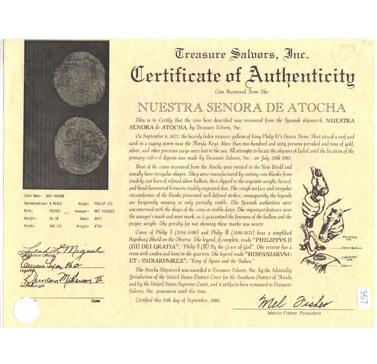 All items are genuine unless noted. Most shipwreck coins and artifacts come with a certificate of authenticity (please check the description for each item). By bidding in this auction you understand and agree to the Terms and Conditions posted here.