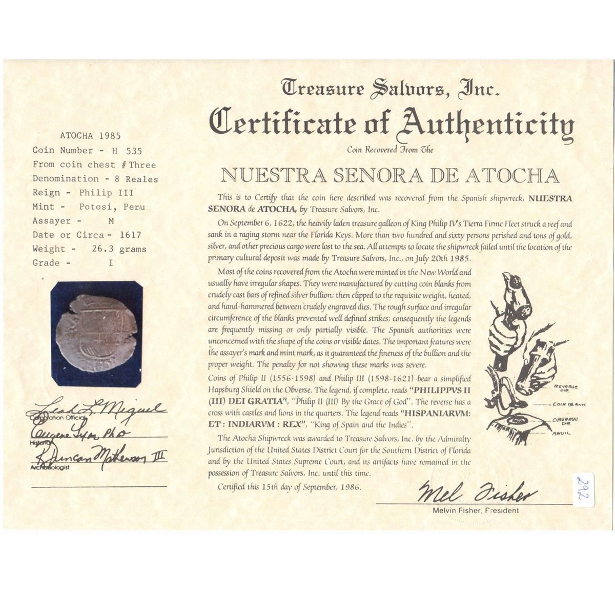All items are genuine unless noted. Most shipwreck coins and artifacts come with a certificate of authenticity (please check the description for each item). By bidding in this auction you understand and agree to the Terms and Conditions posted here.