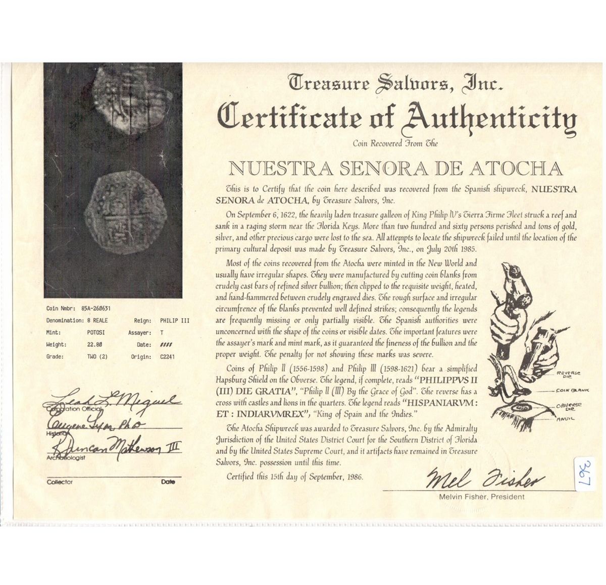 All items are genuine unless noted. Most shipwreck coins and artifacts come with a certificate of authenticity (please check the description for each item). By bidding in this auction you understand and agree to the Terms and Conditions posted here.