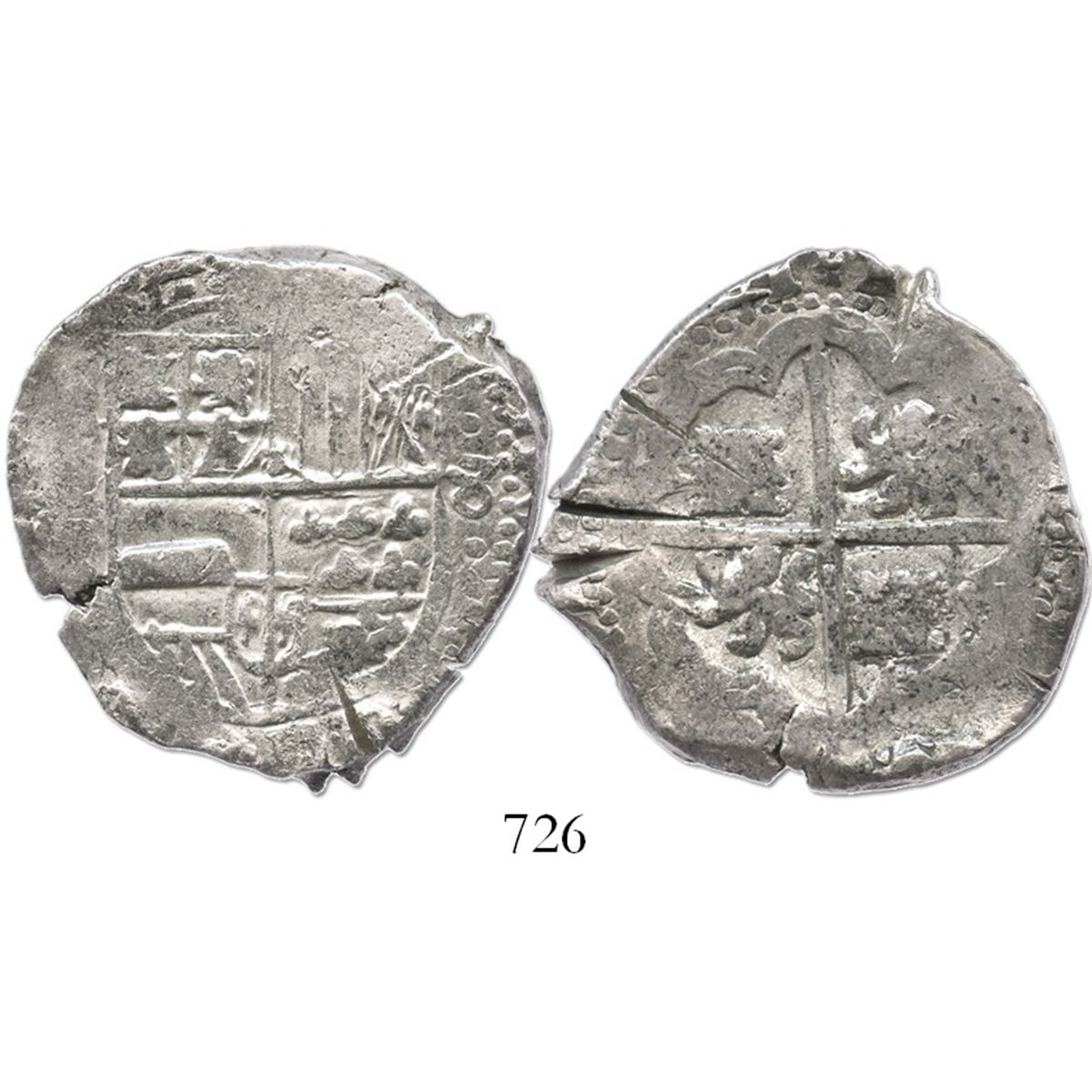 Potosi, Bolivia, cob 8 reales, (16)41(FR), rare (missing in Sellschopp and Karon), with small chopmarks and test-cuts as from circulation in the Orient. S-P28; KM-19a; CT-484 (as TR). 27.1 grams. Silvery VF with good full shield, full cross, clear bottom of 41 of date, small edge-split.