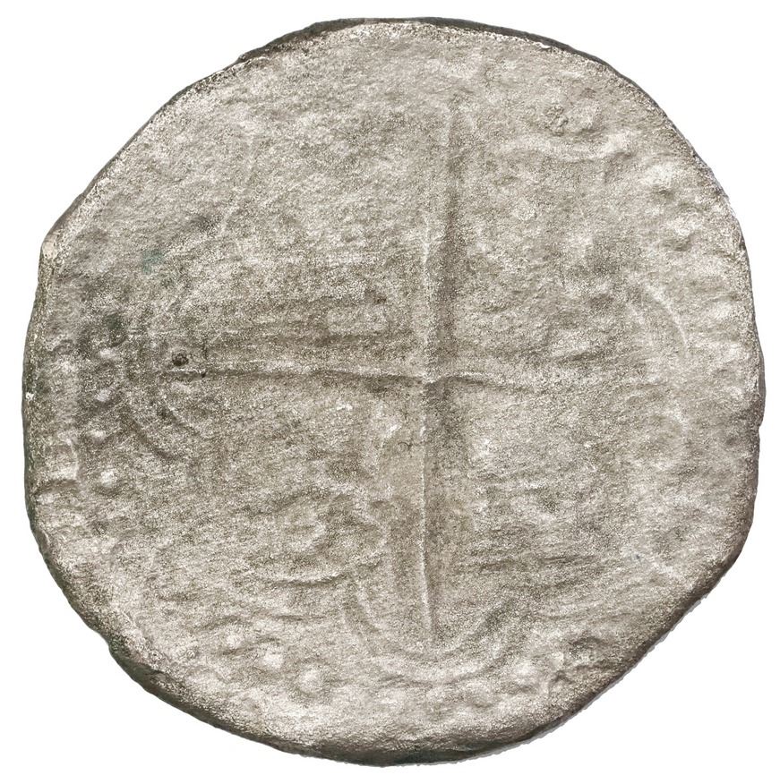Potosi, Bolivia, cob 8 reales, (1618)PAL (rare), ex-Gray. S-P20; KM-10; Cal-922. 13.93 grams. Thin from corrosion but with full and clear assayer, full cross and shield, actually one of the best coins from this wreck, also with neat pedigree. With original Seahawk tag and certificate #91-1A-002507.0103, pedigreed to the Thomas Gray collection and formerly displayed at the ANA Money Museum's "Treasures of the Deep" exhibit (2014-15), also pedigreed to our Auction 10, with original lot-tag #280 and to our Auction 19, with original lot-tag #387. Recovered from: "Dry Tortugas wreck," sunk ca. 1622 in the Dry Tortugas, west of Key West, Florida
