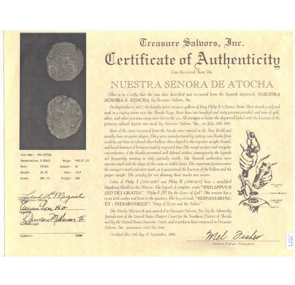 All items are genuine unless noted. Most shipwreck coins and artifacts come with a certificate of authenticity (please check the description for each item). By bidding in this auction you understand and agree to the Terms and Conditions posted here.