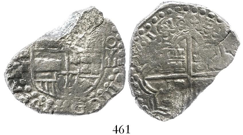 Potosi, Bolivia, cob 8 reales, 1618T, denomination as O-V-III, rare, Grade 3 (estimated), original certificate missing (but replaceable). S-P21; KM-10. 18.9 grams. Bold full date 1618 and denomination in 3 parts, king's ordinal III, most of cross and shield but truncated due to loss of part of edge to corrosion, otherwise nice. From the Atocha, sunk in 1622 west of Key West, Florida, with Fisher tag #214757.