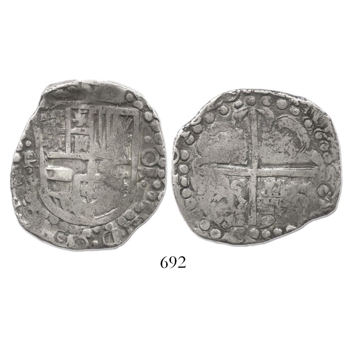 Potosi, Bolivia, cob 8 reales, 1629P, early type with large dots, very rare assayer for date.