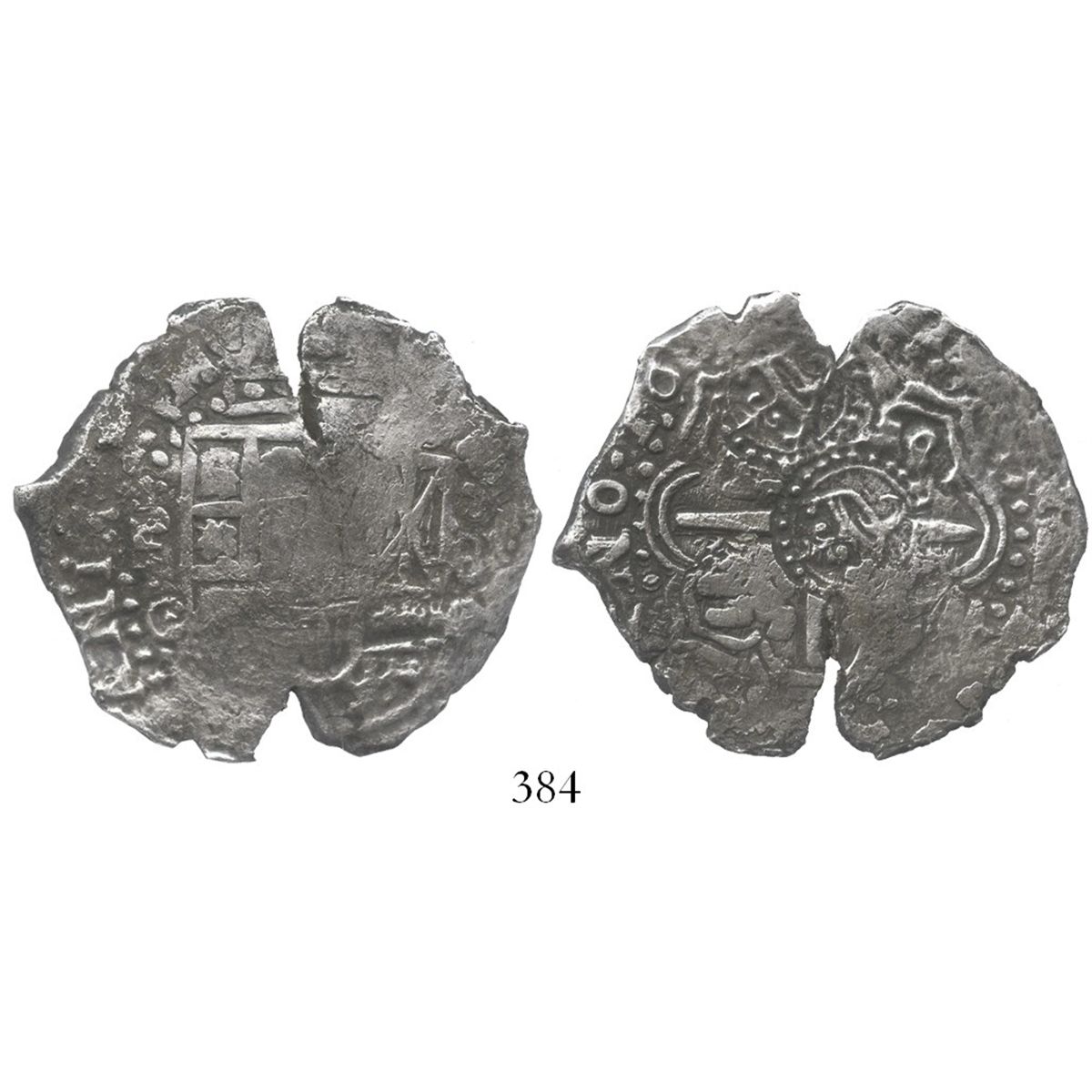 Potosi, Bolivia, cob 8 reales, 165(0-1)O, with 2 crowned-C countermarks on cross (rare).