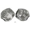 Potosi, Bolivia, cob 8 reales, (1651-2)E, with crowned-(?) countermark on cross.