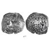 Potosi, Bolivia, cob 8 reales, 1651E, modern 5 (rare), with crown-alone (common) countermark on shie