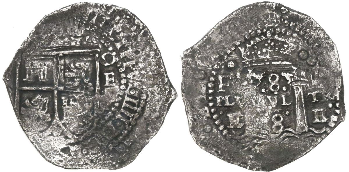 Potosi, Bolivia, cob 8 reales, (1652)E transitional Type IV, from the Maravillas (1656).