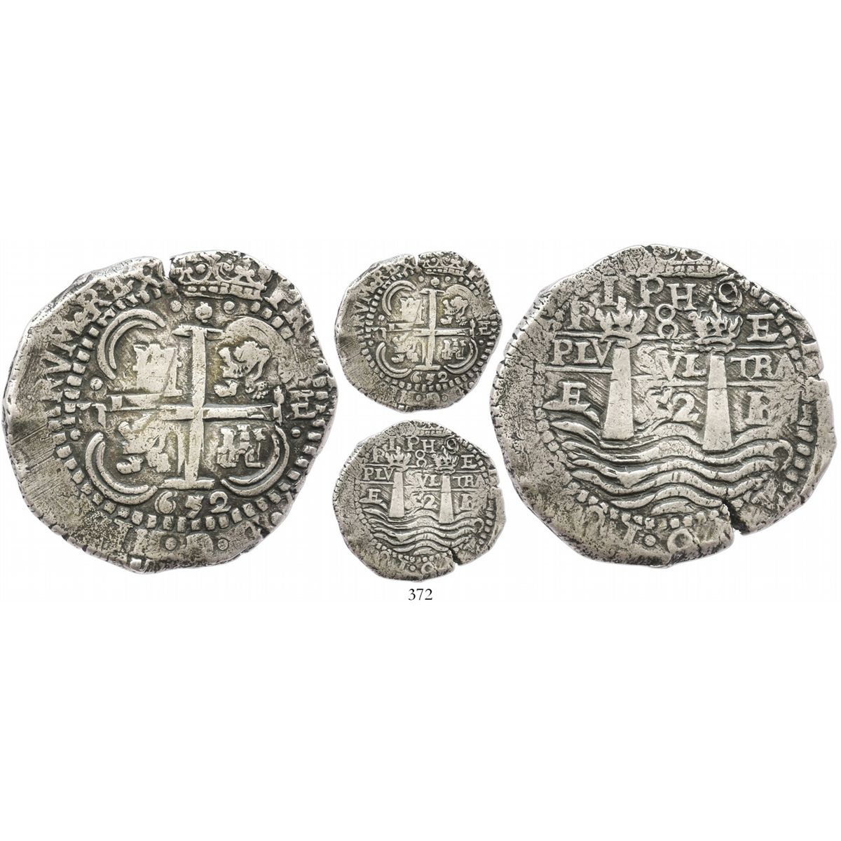 Potosi, Bolivia, cob 8 reales, 1652E, post-transitional (Type VIII/B), 1-PH-6 at top.