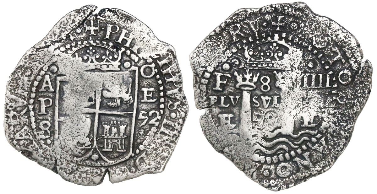 Potosi, Bolivia, cob 8 reales, 1652E transitional Type V, from the Capitana (1654), ex-von Schuckman