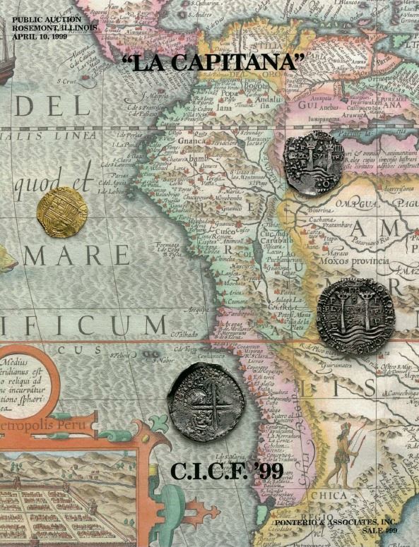 Potosi, Bolivia, cob 8 reales, 1653E, dot-PH-dot at top, ex-Ponterio "La Capitana" sale. S-P37a; KM-21; CT-437. 27.35 grams. Three dates, good full cross and pillars-and-waves, bold PH at top, full king's name, no corrosion but some wear, toned in crevices, desirable pedigree. Pedigreed to the Ponterio "La Capitana" auction of April 1999, with original lot-tag #340 and original catalog, and with certificate from the salvagers. Recovered from: Capitana, sunk in 1654 off Chanduy, Ecuador