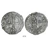 Potosi, Bolivia, cob 8 reales, 1653E, dot-PH-dot at top.