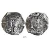 Potosi, Bolivia, cob 8 reales, 1653E, dot-PH-dot at top.