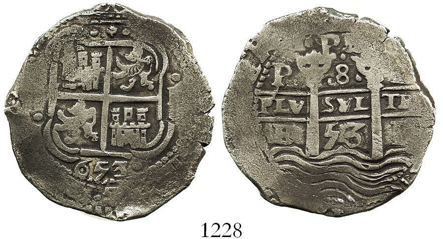 Potosi, Bolivia, cob 8 reales, 1653E.