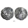 Potosi, Bolivia, cob 8 reales, 1654E, dot-PH-dot at top.