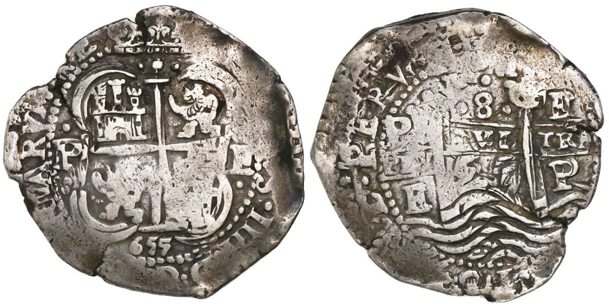 Potosi, Bolivia, cob 8 reales, 1655E.