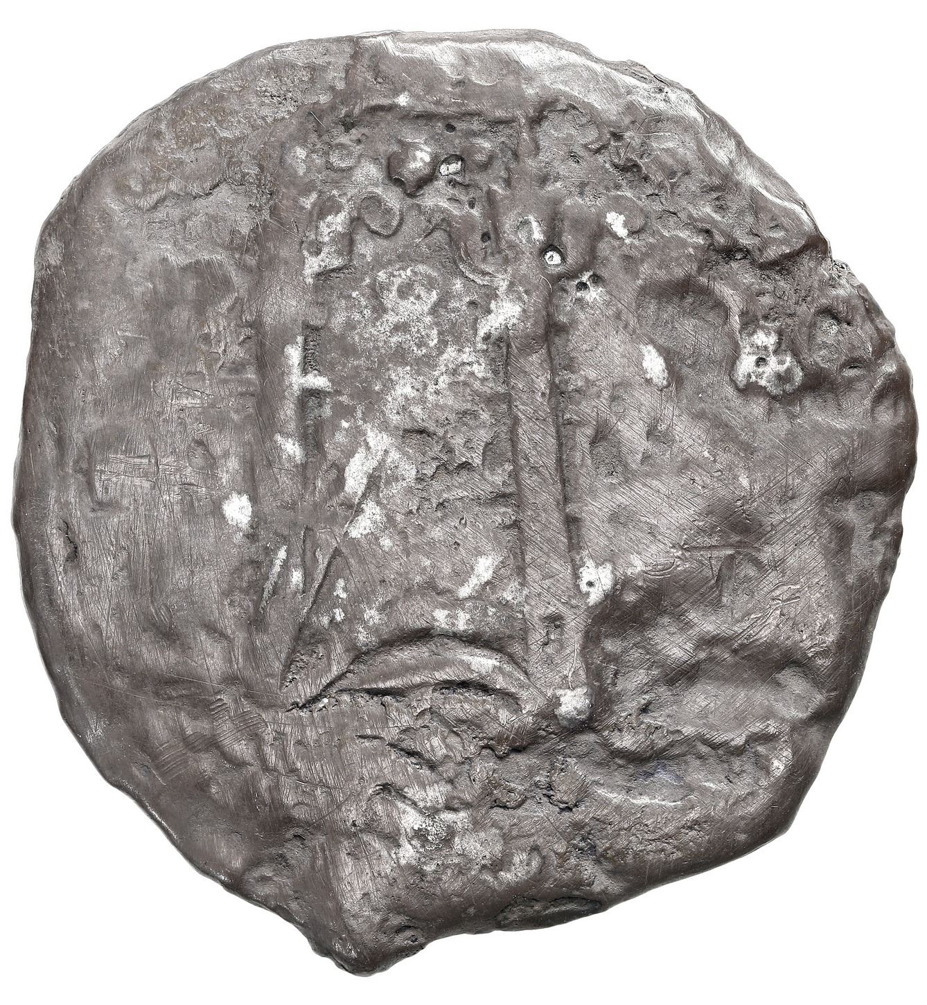 Potosi, Bolivia, cob 8 reales, 1658 E, denomination 8 above cross. S-P37a; KM-21; Cal-1522. 19.70 grams. Dark and corroded with smooth pillars side yet nice cross with full date and most of the king's name visible, scarcer variety for this date. Recovered from: "Jupiter Wreck" (San Miguel Arcangel), sunk in 1659 off the east coast of Florida.