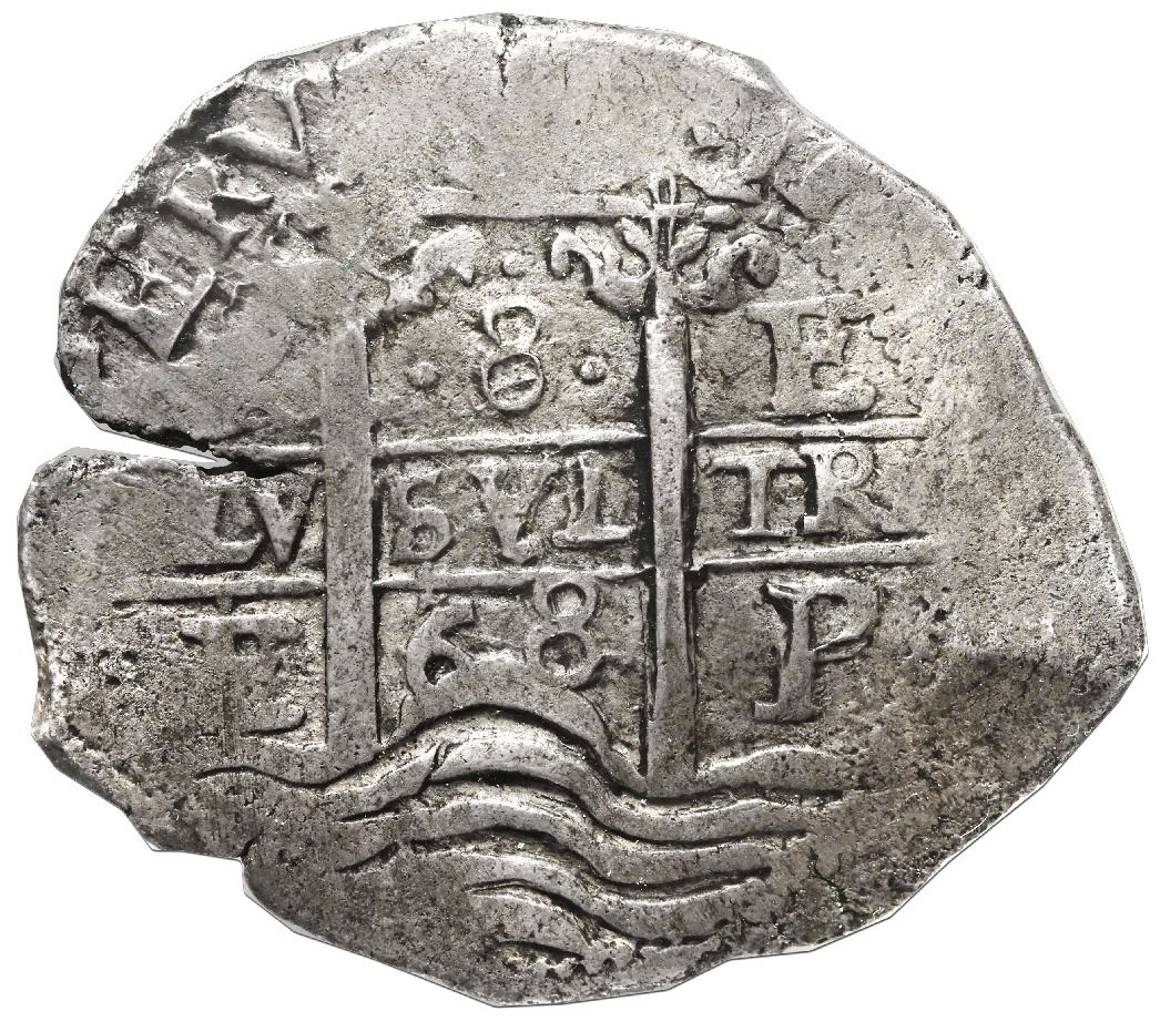 Potosi, Bolivia, cob 8 reales, 1668E, NGC XF 40, finest known in NGC census.