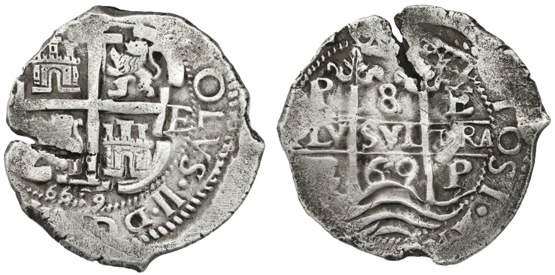 Potosi, Bolivia, cob 8 reales, 1669E.