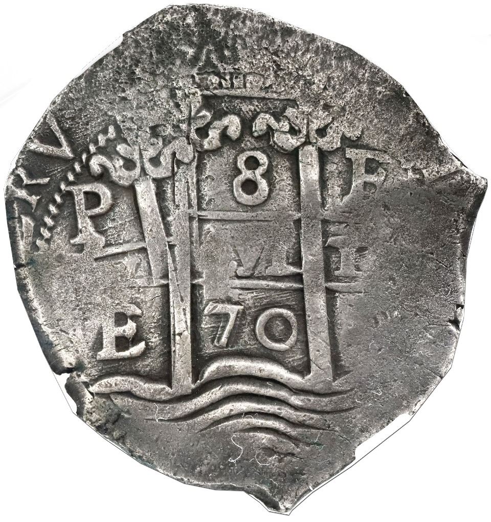 Potosi, Bolivia, cob 8 reales, 1670E, NGC VF 35.