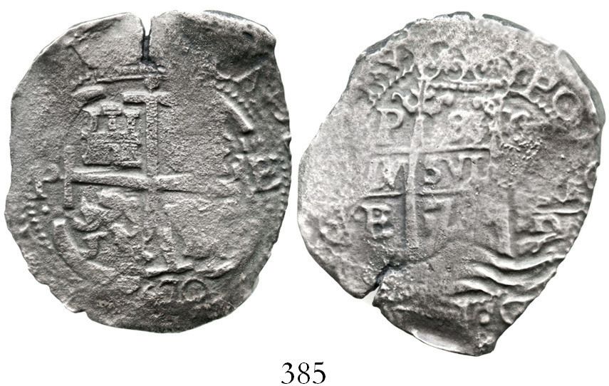 Potosi, Bolivia, cob 8 reales, 1670E. S-P37b; KM-26; CT-345. 18.7 grams. Full cross, full crown and pillars, light corrosion and flatness, edge-split, 3 mintmarks, 2 dates, lightly toned. With ROBCAR photo-certificate #M120010. From the Consolacion, sunk in 1681 off Isla de Muerto, Ecuador