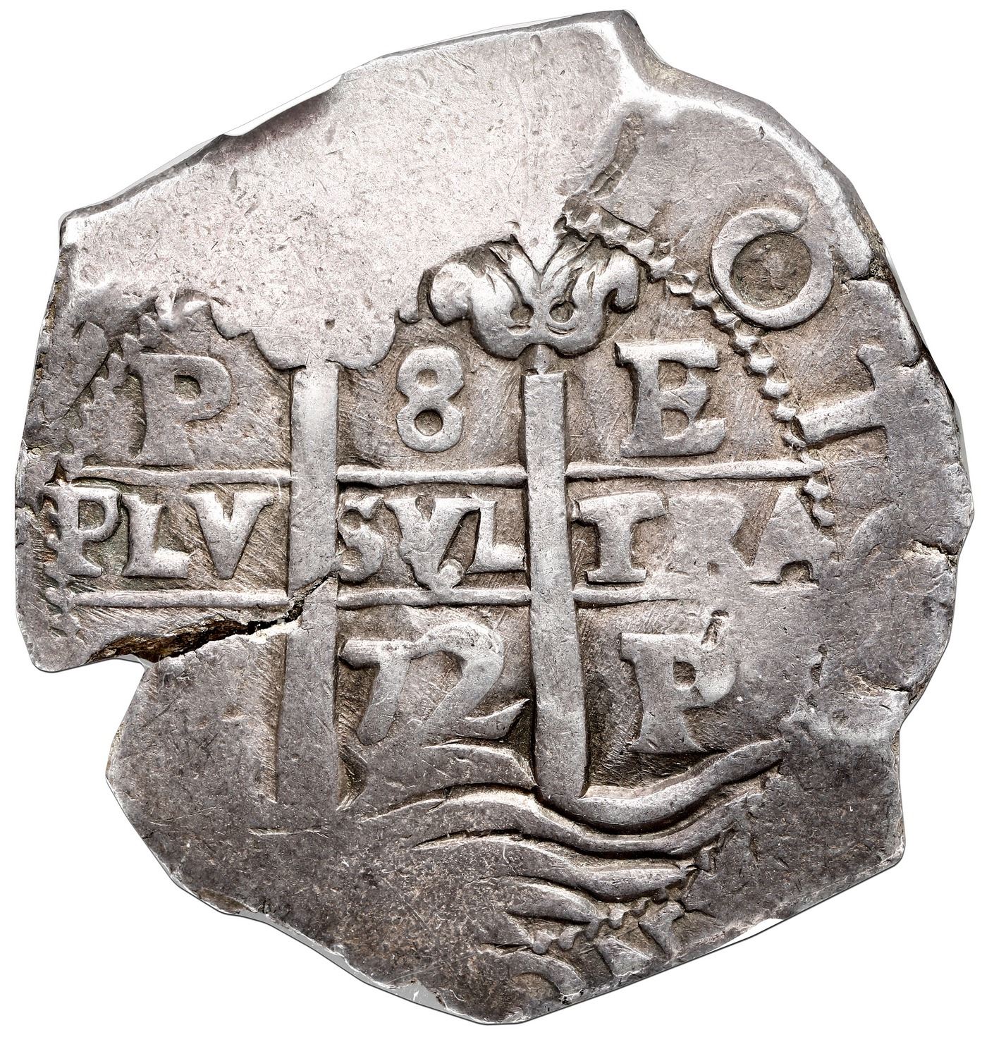 Potosi, Bolivia, cob 8 reales, 1672 E, NGC AU 55, finest known in NGC census.