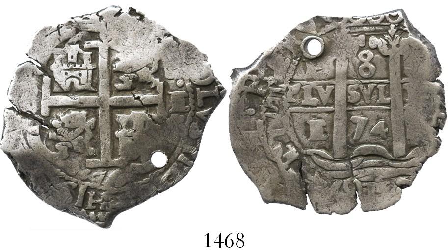 Potosi, Bolivia, cob 8 reales, 1674E.
