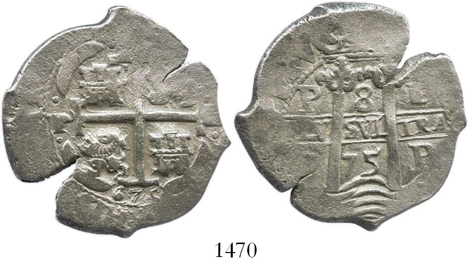 Potosi, Bolivia, cob 8 reales, 1675E.