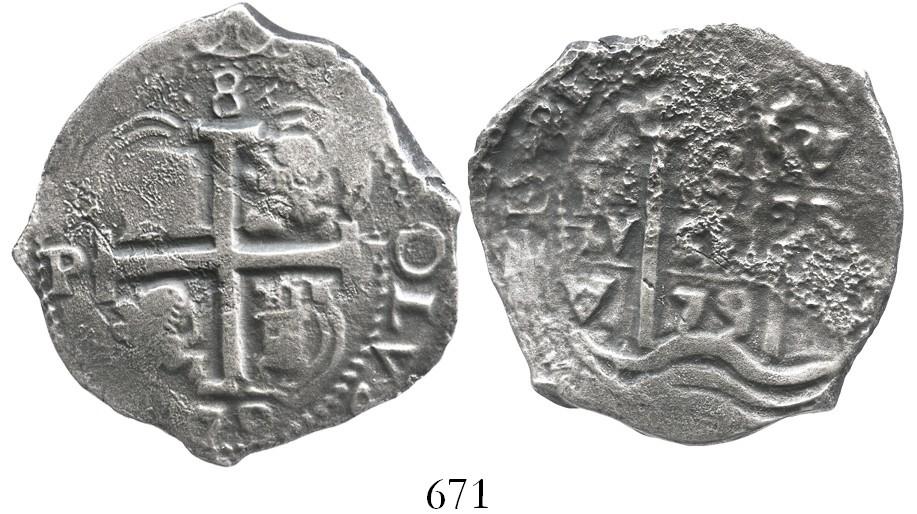 Potosi, Bolivia, cob 8 reales, 1679V.