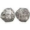 Potosi, Bolivia, cob 8 reales, 1687VR, with original certificate (rare). S-P40; KM-26; CT-372. 26.88 grams. Smallish flan with no corrosion but some flatness, three assayers and two dates, lightly toned, small scuff (from salvage) to right of pillars. With original, hand-signed certificate from the salvagers. Recovered from: Piedmont, sunk in 1795 off Dorset, England