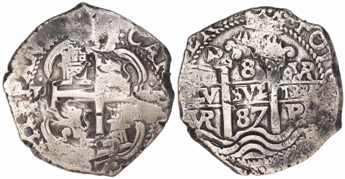 Potosi, Bolivia, cob 8 reales, 1687VR.