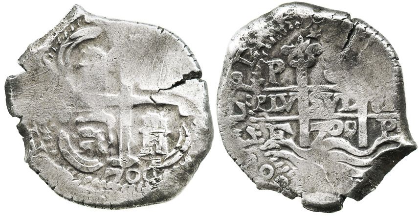Potosi, Bolivia, cob 8 reales, 1700F.