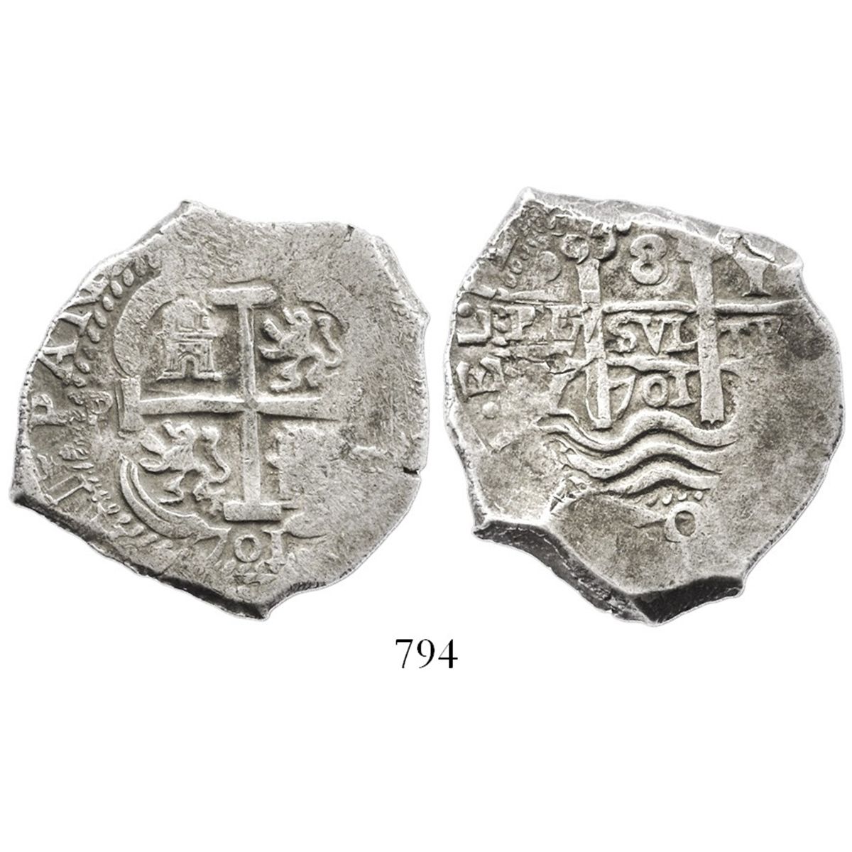 Potosi, Bolivia, cob 8 reales, 1701Y.