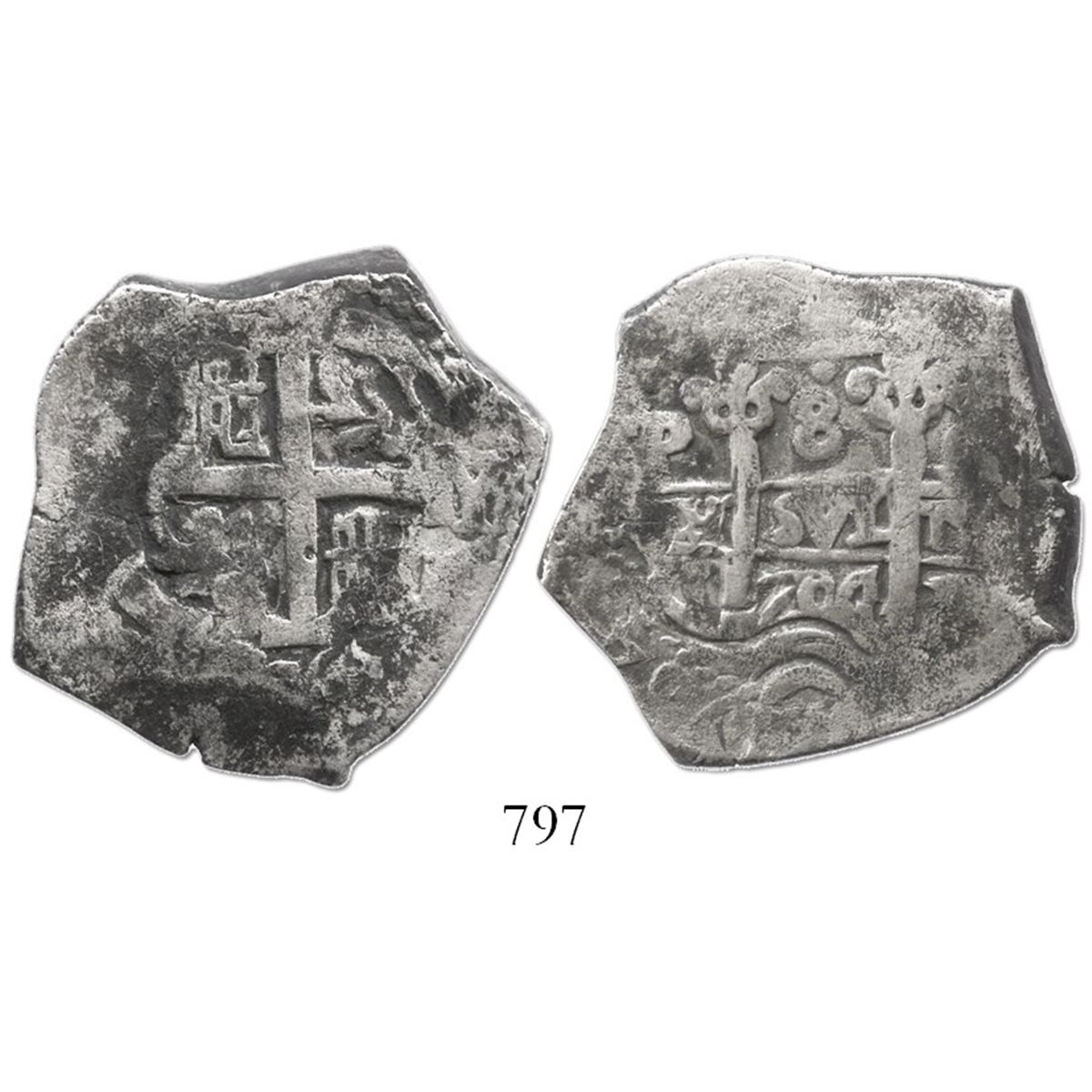 Potosi, Bolivia, cob 8 reales, 1704Y.
