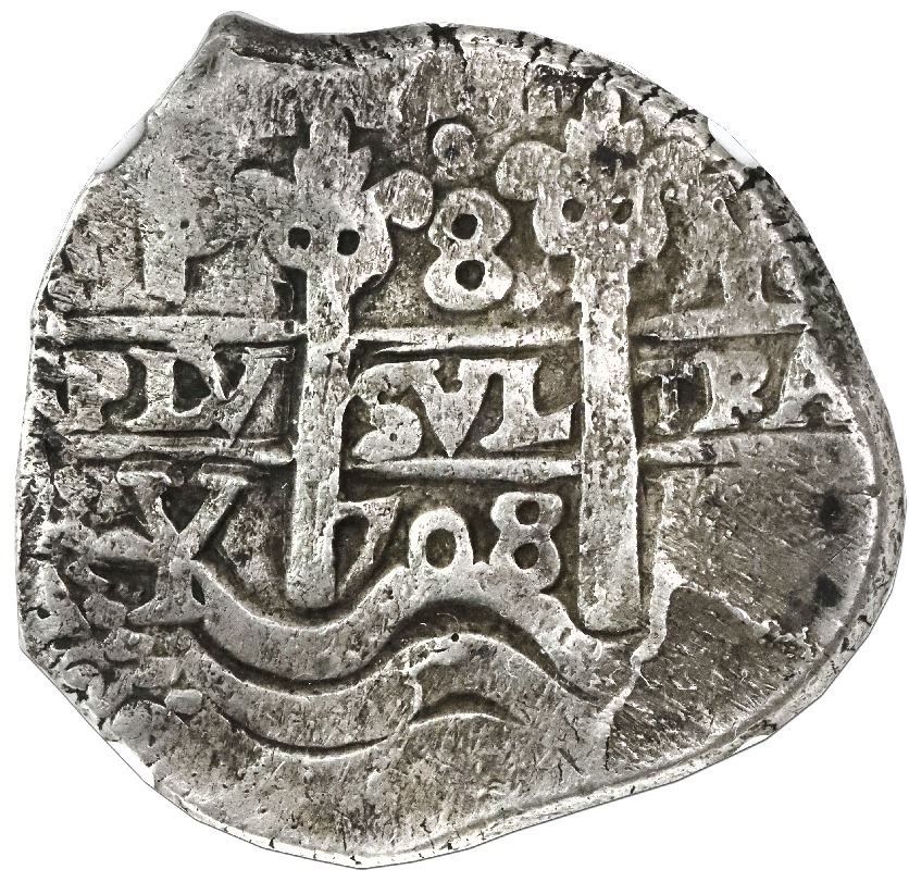 Potosi, Bolivia, cob 8 reales, 1708Y, NGC VF 35, finest known in NGC census.