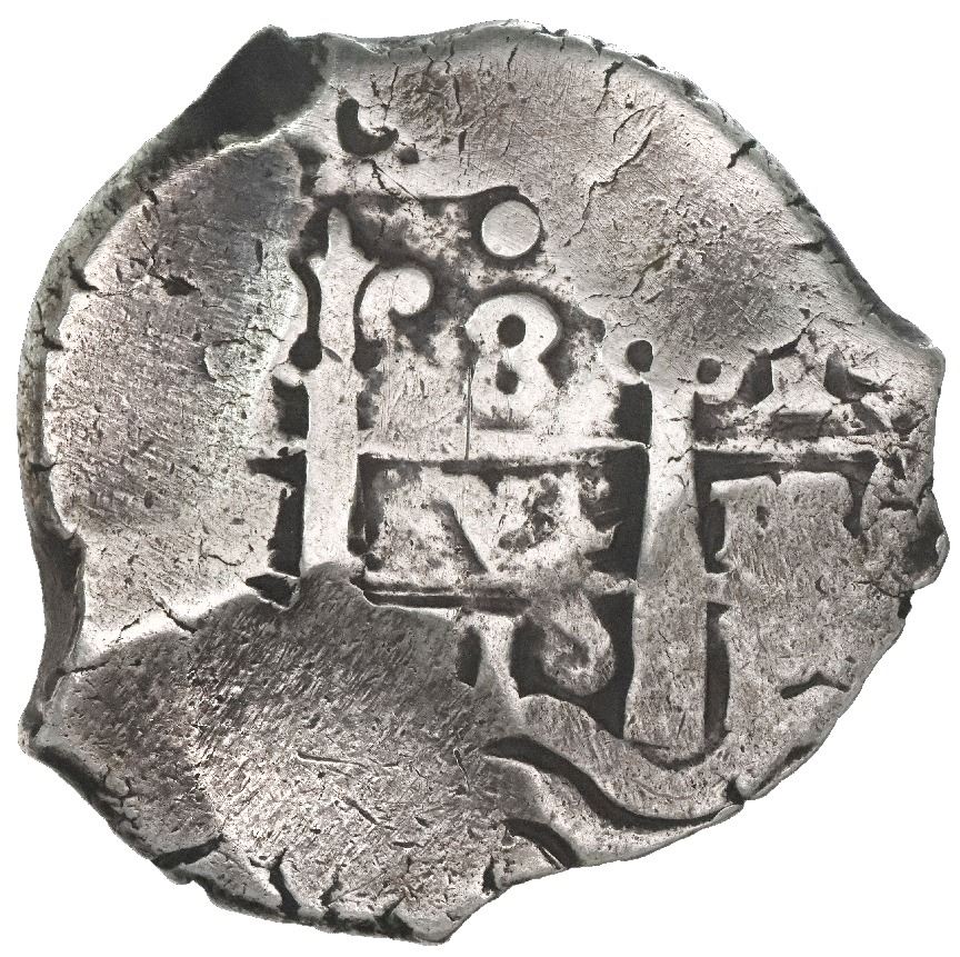 Potosi, Bolivia, cob 8 reales, 1710Y. S-P43a; KM-31; Cal-1546. 26.07 grams. Quite chunky as usual for this period (this date very scarce), with clear date within nearly full pillars, full assayer to right of nearly full cross, About Fine with dark toning in crevices. Pedigreed to the Arturo Rosenheim collection.