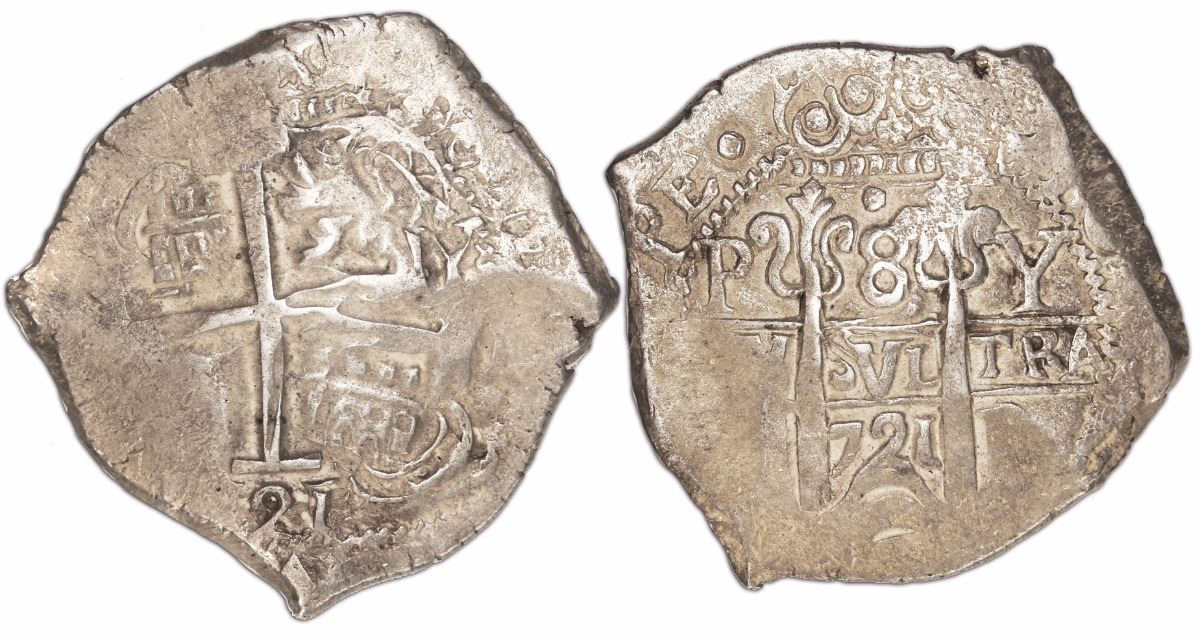 Potosi, Bolivia, cob 8 reales, 1721Y.
