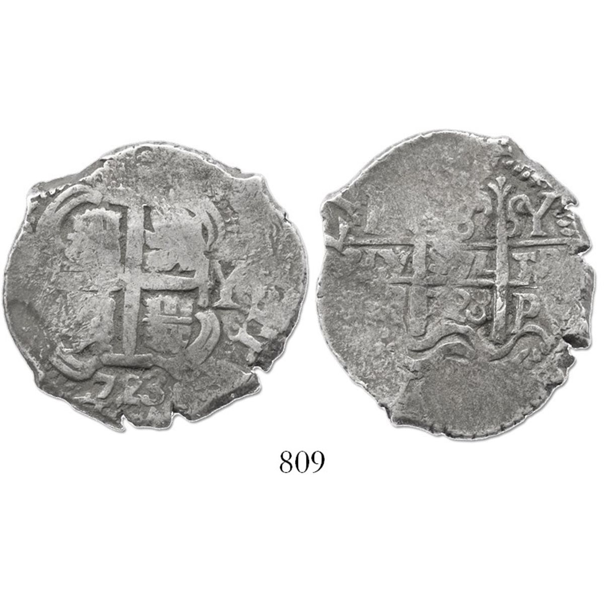 Potosi, Bolivia, cob 8 reales, 1723Y, rare (missing in Karon).