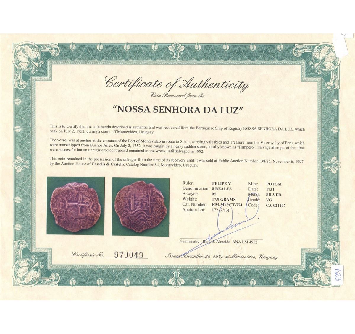 All items are genuine unless noted. Most shipwreck coins and artifacts come with a certificate of authenticity (please check the description for each item). By bidding in this auction you understand and agree to the Terms and Conditions posted here.