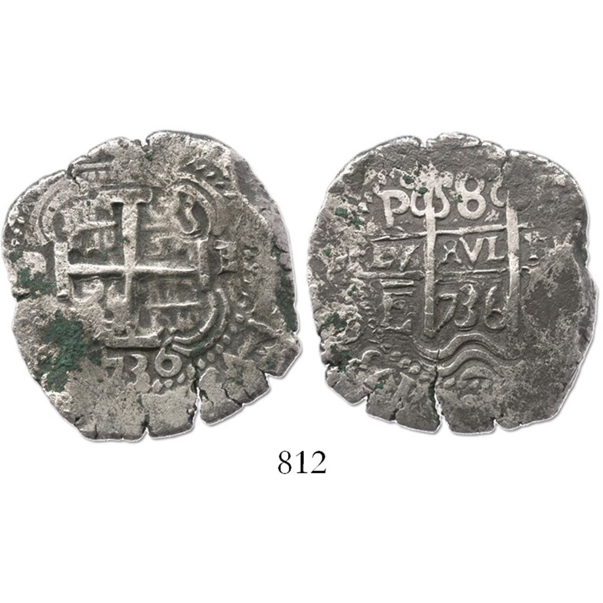 Potosi, Bolivia, cob 8 reales, 1736E.