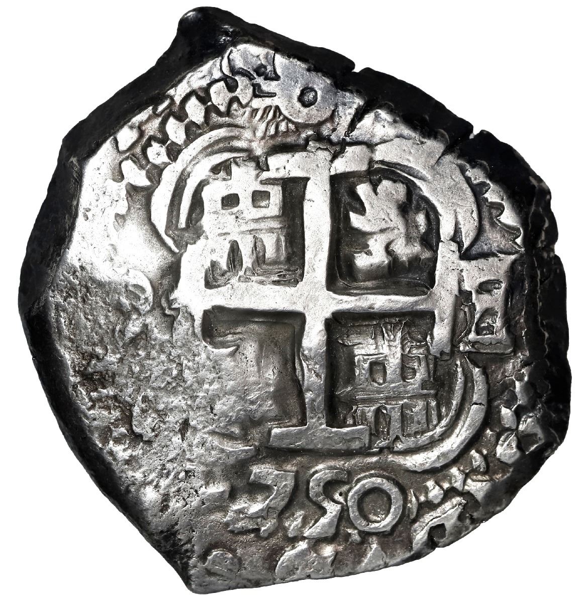 Potosi, Bolivia, cob 8 reales, 1750 E/q with retrograde E on cross side, unique.
